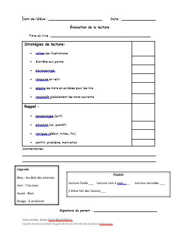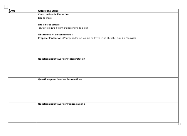 Grille pour garder des traces lors d’un entretien de lecture