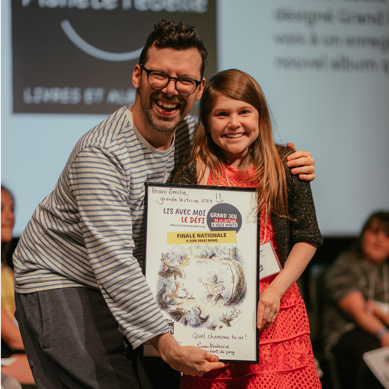 D’un grand jeu de lecture à voix haute! Le défi est simple : les élèves sélectionnent un livre qui leur plaît, s’exercent à lire un extrait à voix haute puis le lisent à leurs compagnons de classe pendant trois minutes. À la fin des présentations, un grand lecteur de classe est choisi pour se présenter à la finale de son école. Le grand lecteur de l’école se rend ensuite à la finale de son centre de services scolaire où le finaliste est convié à lire à voix haute pour la finale NATIONALE, qui aura lieu le 3 juin 2022. Gratuit et ludique, ce grand jeu de lecture à voix haute a pour mission de partager et promouvoir le plaisir de la lecture auprès des jeunes.
